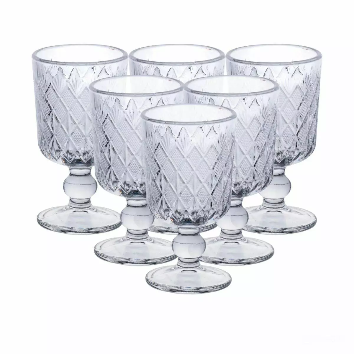 Чарки доречні для використання вдома, у кафе або на святкових подіях. Поверхня легко миється мийними засобами без абразивів. Прозоре скло з декоративною фактурою поєднує в собі естетику та практичність у щоденному користуванні.