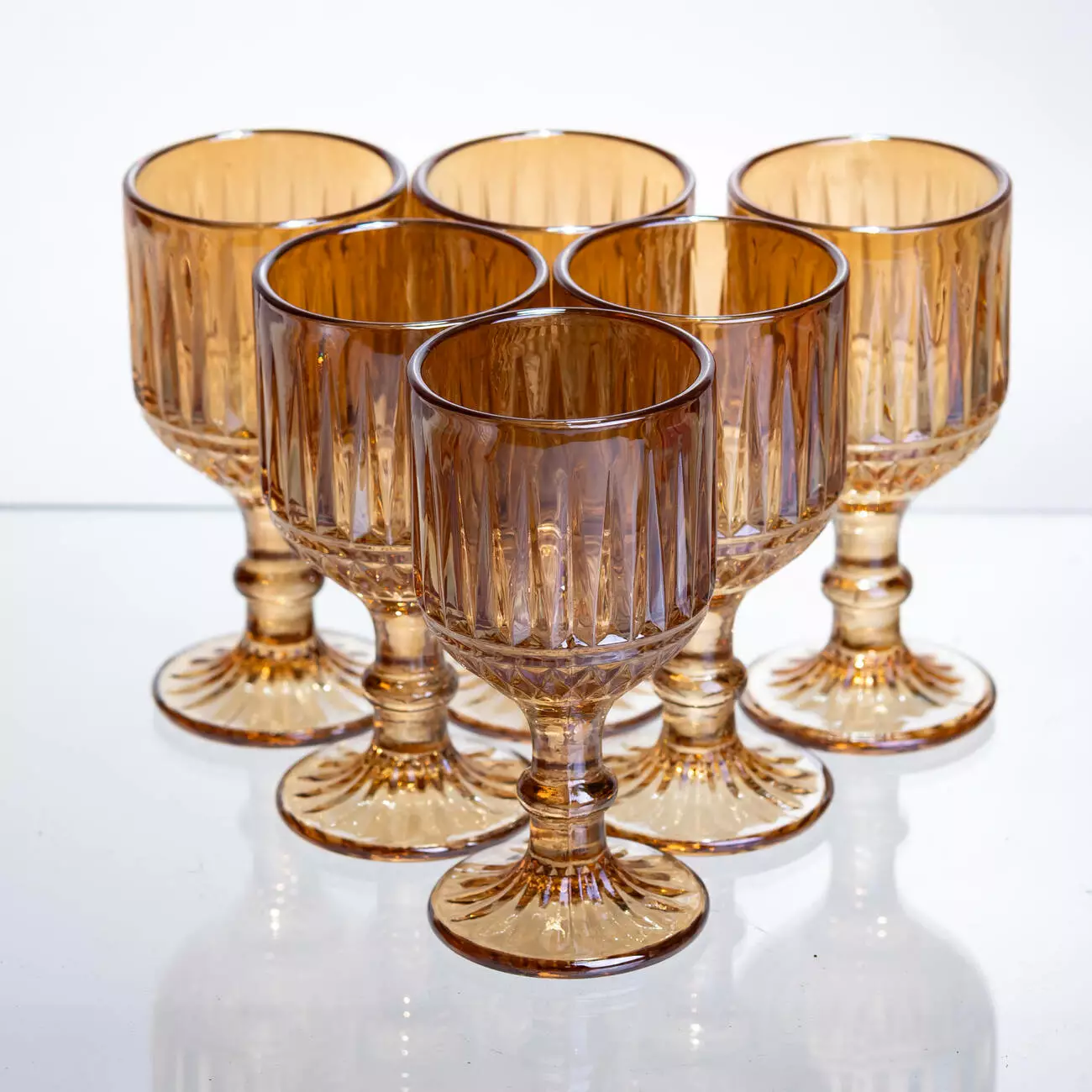 Форма чарок універсальна — без зайвих декоративних елементів, що дозволяє використовувати їх у різних стилях сервірування. Практичний набір для повсякденного або святкового вжитку.