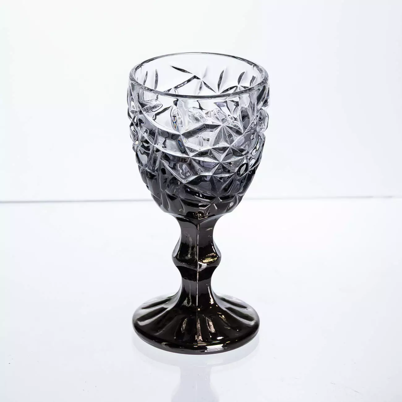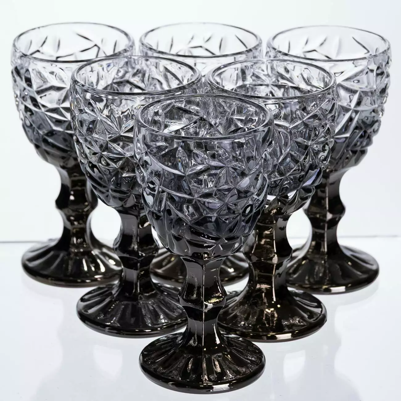 Елегантний набір із 6 чарок з ефектною текстурою та естетичним дизайном - відмінний вибір для подачі міцних напоїв. Вишуканий малюнок на келиху, димчасте скло, витончена ніжка та стійка кругла основа – ідеальне поєднання стилю та практичності.