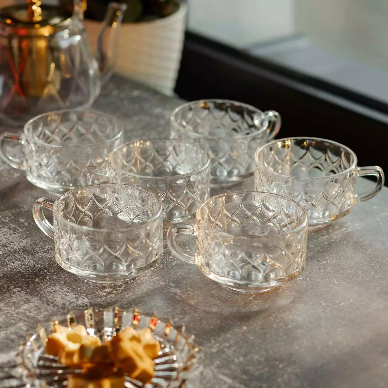 Прозоре скло дозволяє оцінити колір напою, а зручна форма чашок забезпечує комфорт при використанні. Вироби поєднують практичність і естетичний вигляд, підходять як для домашнього використання, так і для закладів громадського харчування.