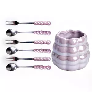 нержавіючої сталі. Ручки приборів порцелянові, оформлені у вигляді