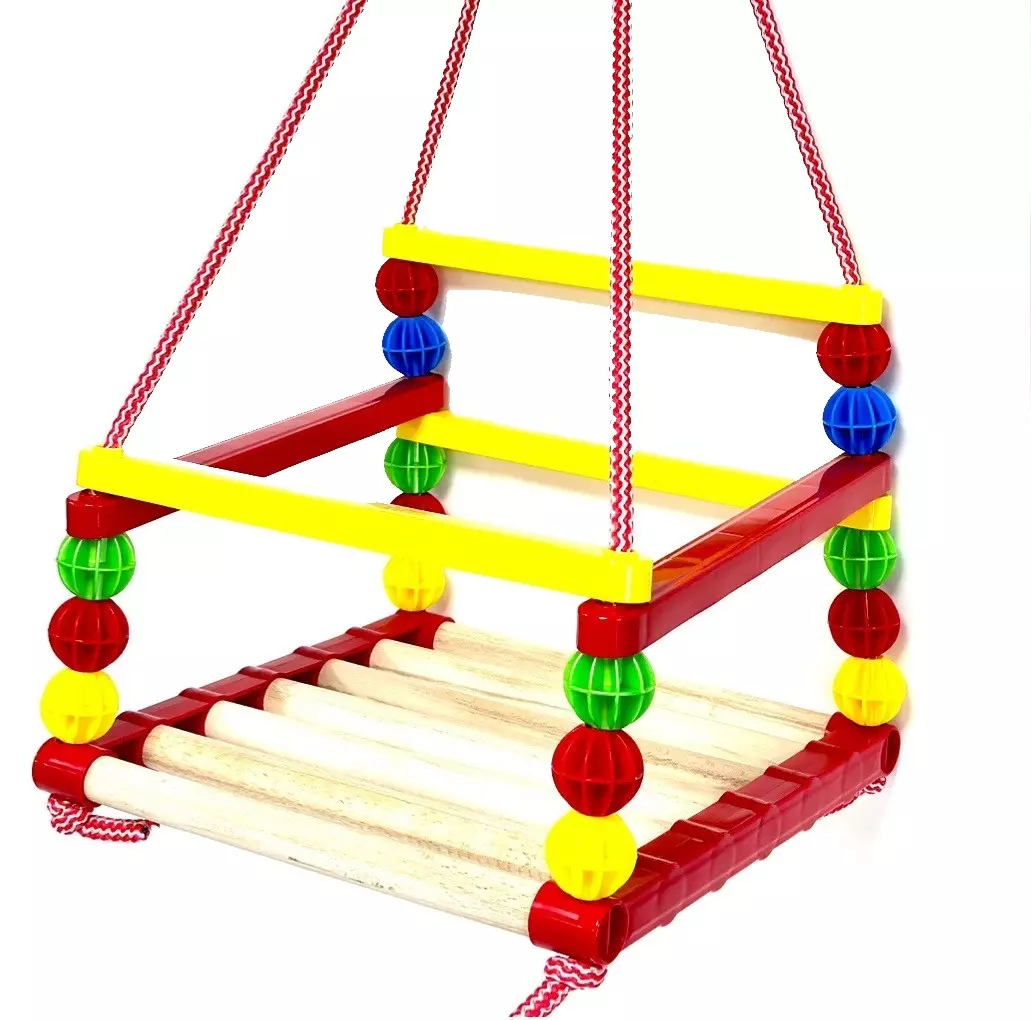 Дитяча гойдалка підвісна – дерев’яне сидіння, пластикові бортики. Матеріал – дерево бук / пластик. Яскрава дитяча гойдалка підвісна доставить масу незабутніх моментів Вашій дитині. Розрахована на вагу до 40 кг. Мотузки товсті , міцні – 12 мм.