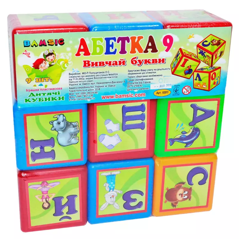 Різнокольорові дитячі кубики «Абетка» з українськими літерами – радість для будь-якого малюка. Під кожною літерою малюк побачить тварину або предмет, назва якого починається на цю саму букву. Така комбінація дозволить пупсу швидше вивчити українську абетку, що суттєво полегшить йому навчання в дитячому садку, і заразом познайомитися з назвами звірят, пташок та предметів. Адже саме завдяки грі в асоціації дитина зможе легко та швидко адаптуватися у навколишньому середовищі. Кубики виконані з якісної пластмаси та в них відсутні гострі кути, що робить їх абсолютно безпечними. Розвивають координацію рухів та дрібну моторику рук. Розмір кубика 8*8*див. Розмір набору 24*8,5*24 см. Вага 350 г