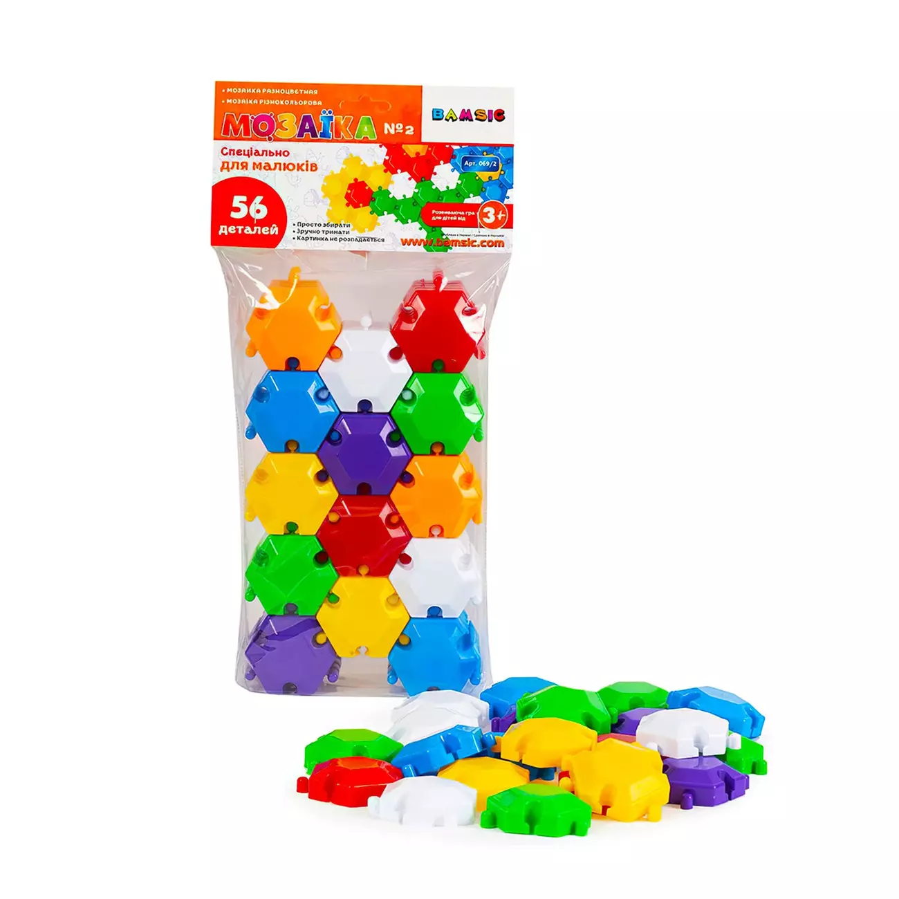Фотография 1 товарной позиции интернет-магазина детских игрушек www.smarttoys.com.ua Набір дитячий «Мозаїка різнокольорова №2» арт. 069/2 (56 деталей) діам мозаїкi 50 мм Бамсик