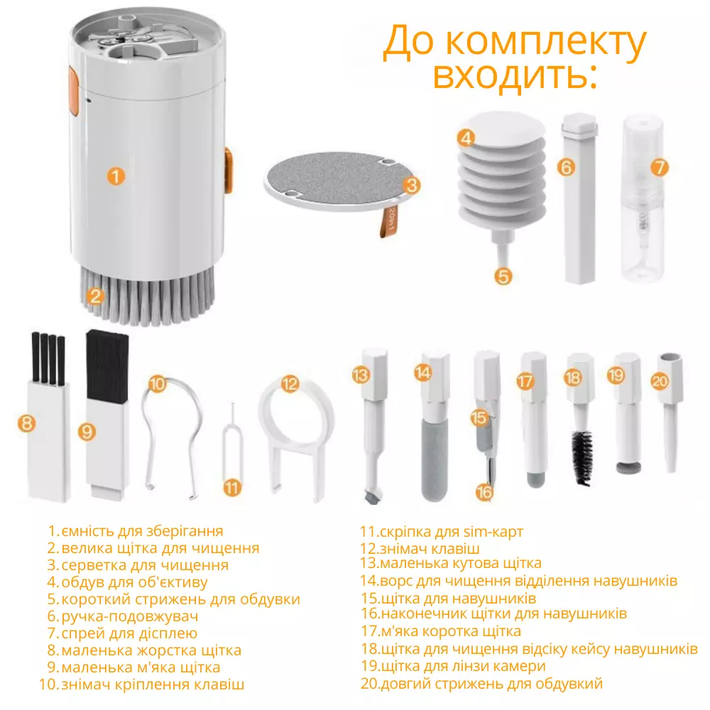 Набір аксесуарів для чищення гаджетів 20 в 1 — універсальний