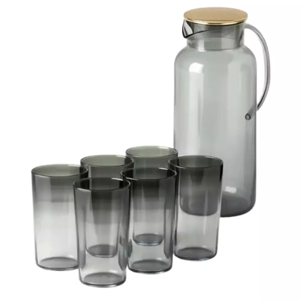 Набір для напоїв із 7 предметів — це функціональне рішення для повсякденного використання вдома або на роботі. Він включає глечик об'ємом 1,5 літра та шість склянок по 120 мл кожна. Усі елементи виконані зі скла сірого кольору, яке виглядає стримано й стильно. Такий дизайн органічно впишеться в сучасний інтер'єр кухні або сервірування столу.