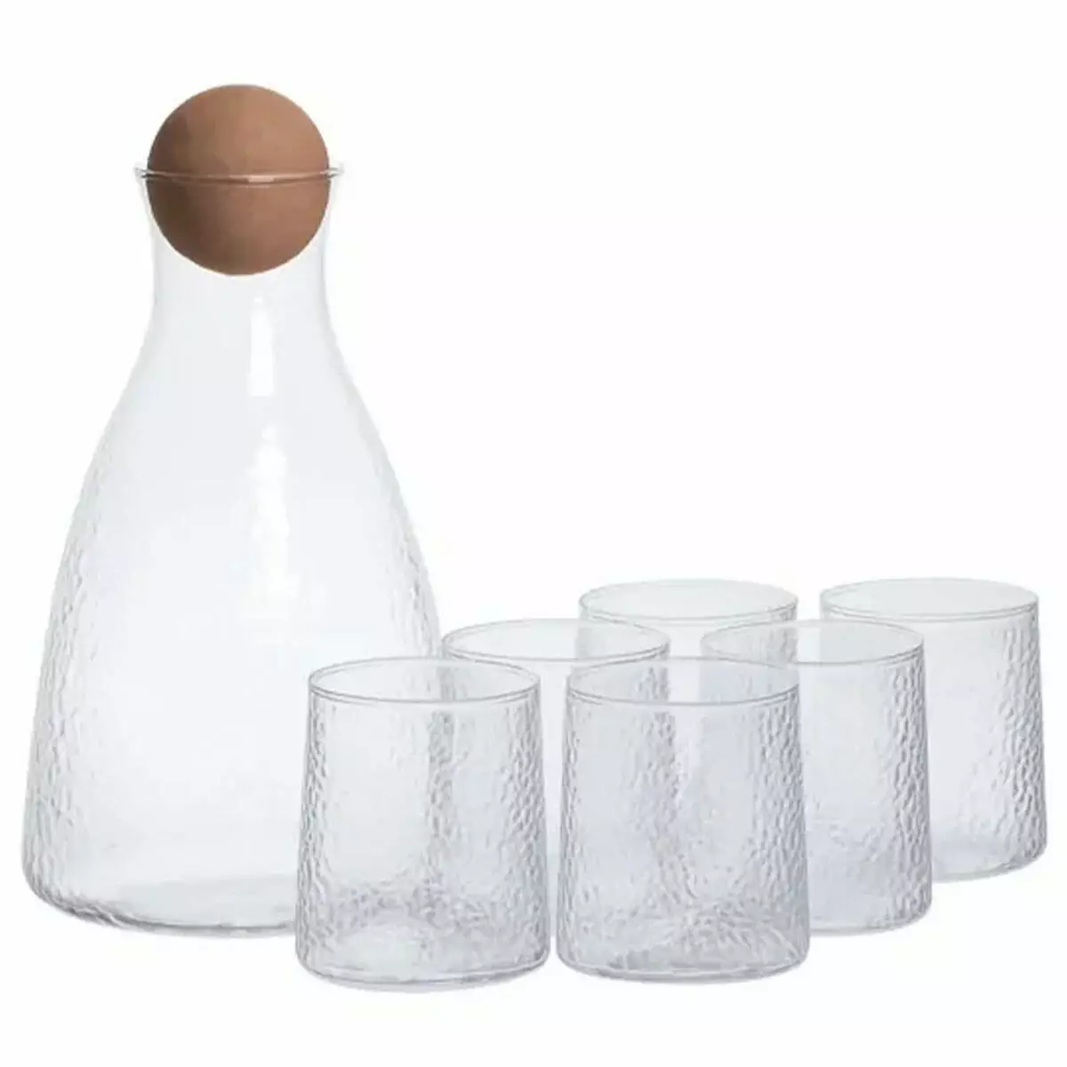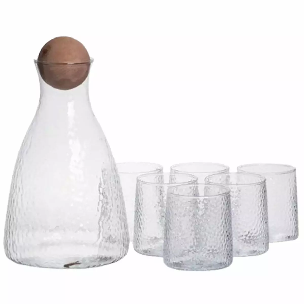 Набір для напоїв графин з бамбуковою кришкою та 6 склянок, прозорий