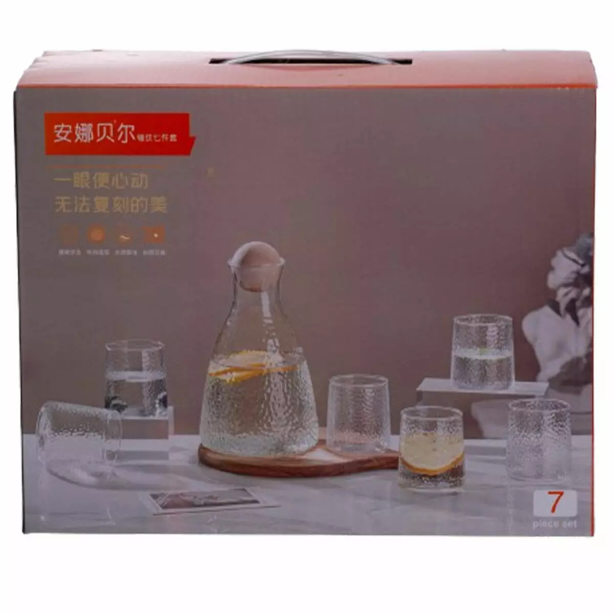 Набір для напоїв із графином і шістьма склянками — це поєднання практичності та сучасного дизайну. Графин об’ємом 2 літри має зручну форму та доповнений кришкою з натурального бамбука у вигляді кулі, що щільно вкладається у горловину. Вона запобігає попаданню пилу й зберігає аромат напоїв, додаючи набору елегантності.