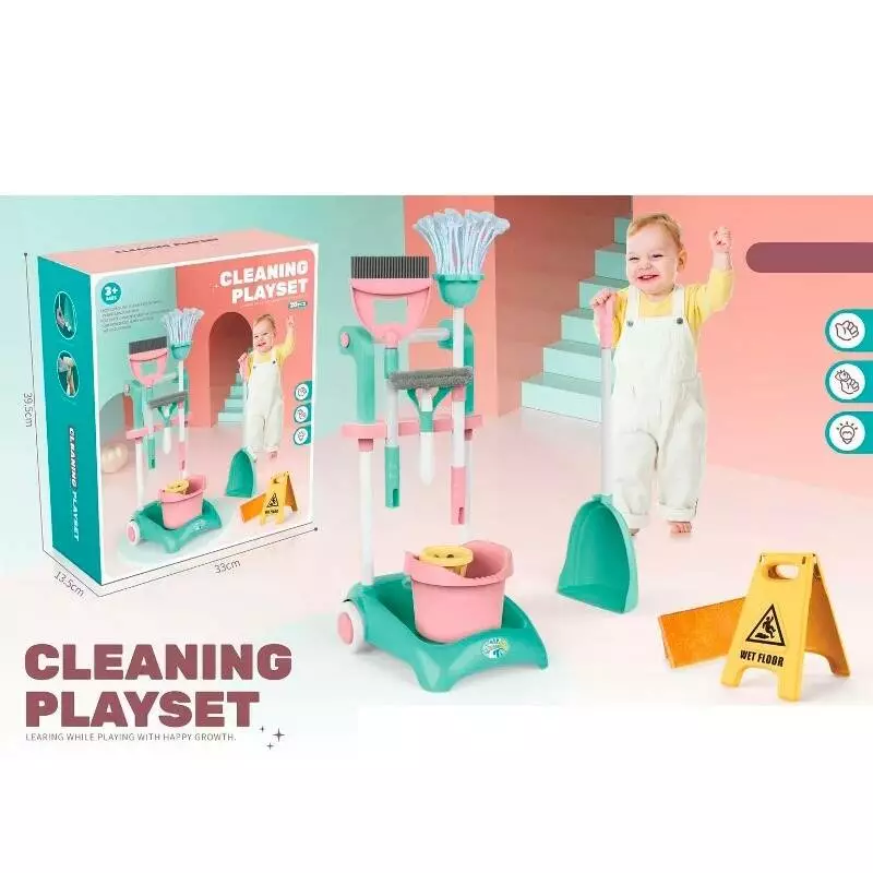 Фотография 1 товарной позиции интернет-магазина детских игрушек www.smarttoys.com.ua Набір для прибирання 988-8 візок, відро, щітка, совок, 20 предм., кор., 40-33-13,5 см.