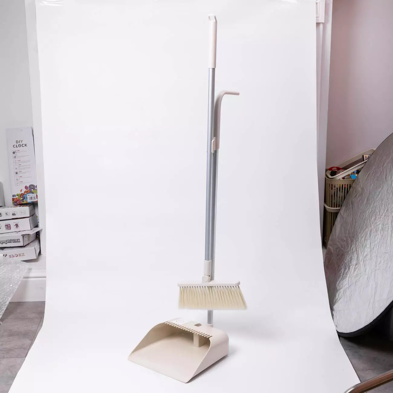 Практичний набір для швидкого прибирання: щітка з довгою ручкою та совок, що складається та фіксується поруч із щіткою. Ідеальний для кухні, передпокою, офісу – зберігається у вертикальному положенні, займає мінімум місця та завжди готовий до використання.