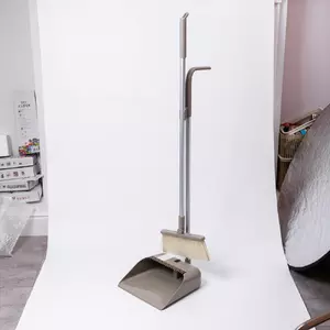Практичний набір для швидкого прибирання: щітка з довгою ручкою та совок, що складається та фіксується поруч із щіткою. Ідеальний для кухні, передпокою, офісу – зберігається у вертикальному положенні, займає мінімум місця та завжди готовий до використання.