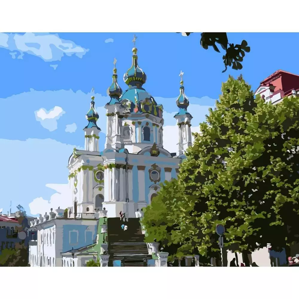 Фотография 1 товарной позиции интернет-магазина детских игрушек www.smarttoys.com.ua Набір для розпису по номерах Андріївська церква Strateg розміром 40х50 см (GS242)