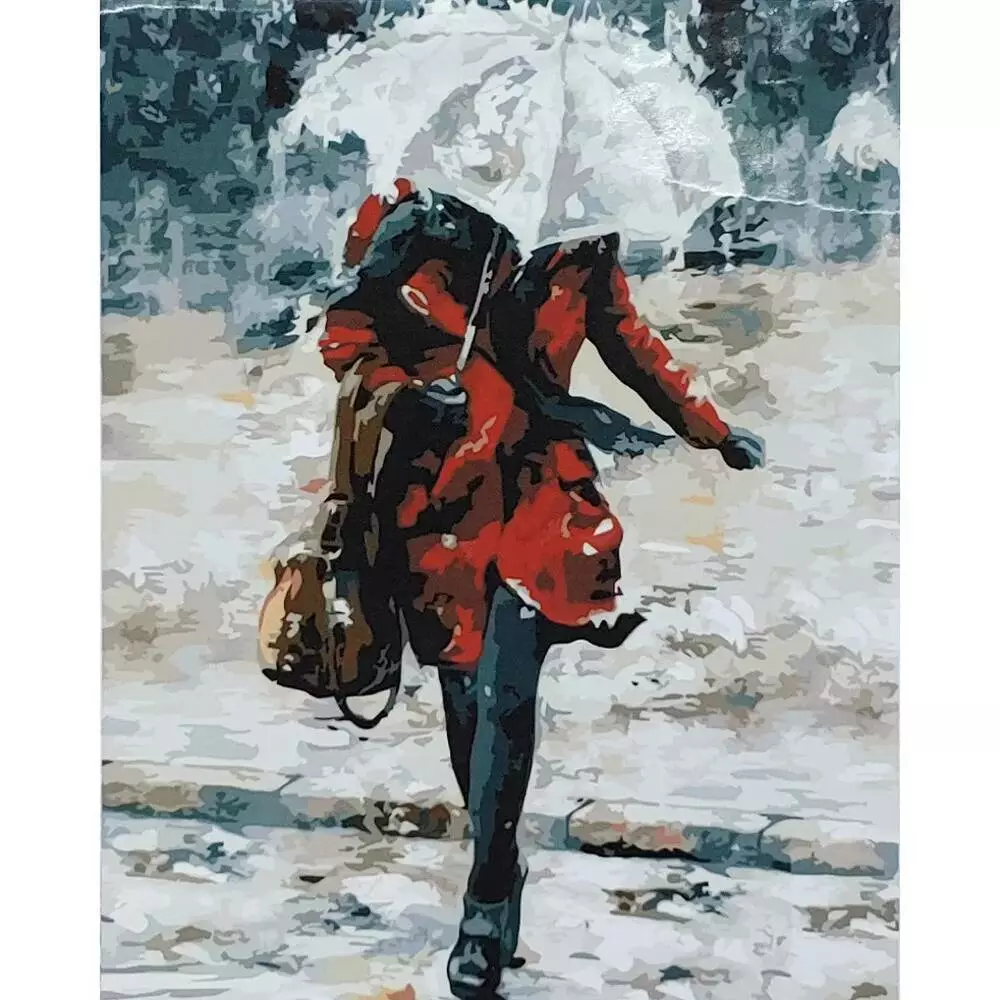 Фотография 1 товарной позиции интернет-магазина детских игрушек www.smarttoys.com.ua Набір для розпису по номерах Дівчина в червоному під зонтом Strateg розміром 40х50 см (GS005)