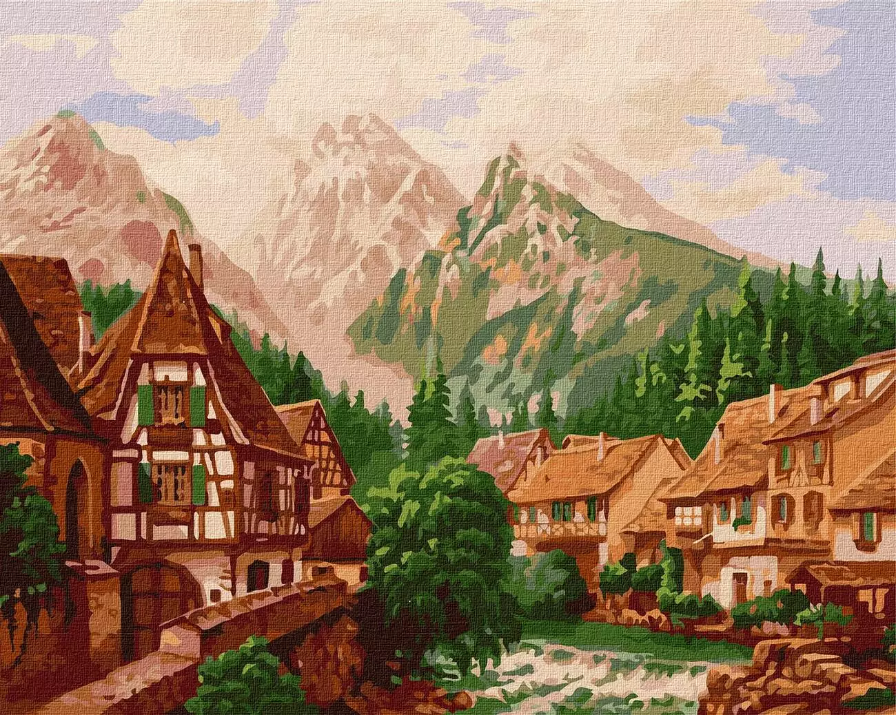 Набір для розпису по номерах. "Містечко в горах" 40х50см