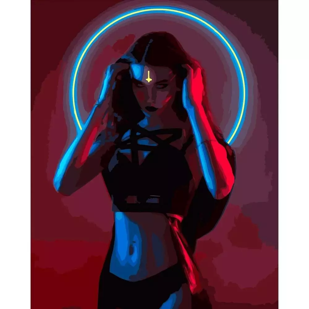 Набір для розпису по номерах Неонова дівчина Strateg розміром 40х50 см (GS339)