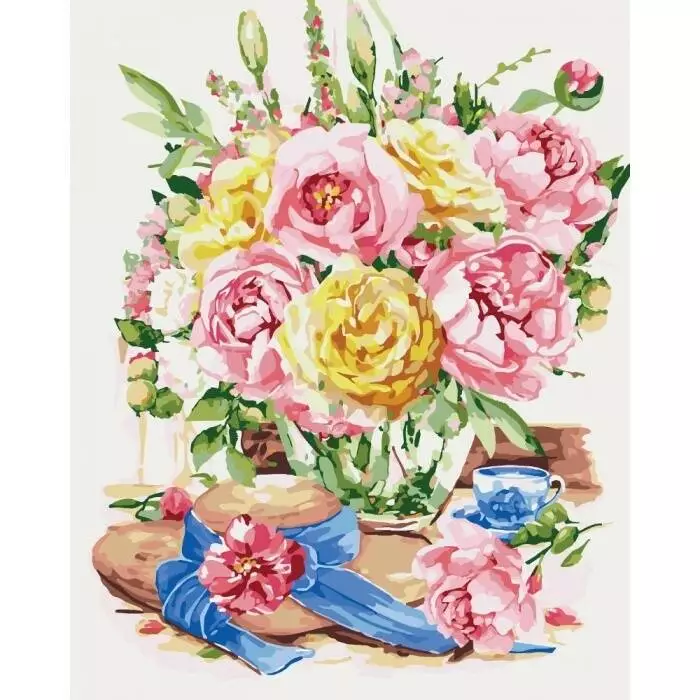 Набір для розпису по номерах. Сільський пейзаж "Свіжість півоній 2" 40*50см