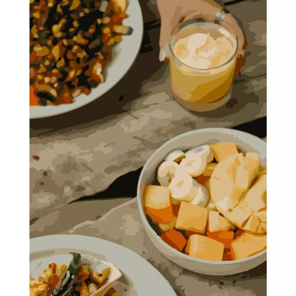 Фотография 1 товарной позиции интернет-магазина детских игрушек www.smarttoys.com.ua Набір для розпису по номерах Тропічний перекус Strateg розміром 40х50 см (GS273)