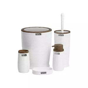 Перетворіть вашу ванну кімнату на оазу стилю та гармонії з набором для ванної кімнати OKYANUS (OKY-486-3-S). Цей елегантний набір включає три незамінні аксесуари: мильницю, стакан для зубних щіток та дозатор для рідкого мила. Кожен елемент виконаний у єдиному дизайні, що створює цілісний та завершений вигляд. Виготовлений з міцного та якісного матеріалу, набір стійкий до вологи та легко чиститься. Його лаконічний дизайн чудово впишеться в будь-який інтер'єр, додаючи йому елегантності та функціональності. Це ідеальне рішення для тих, хто цінує красу, порядок та деталі.