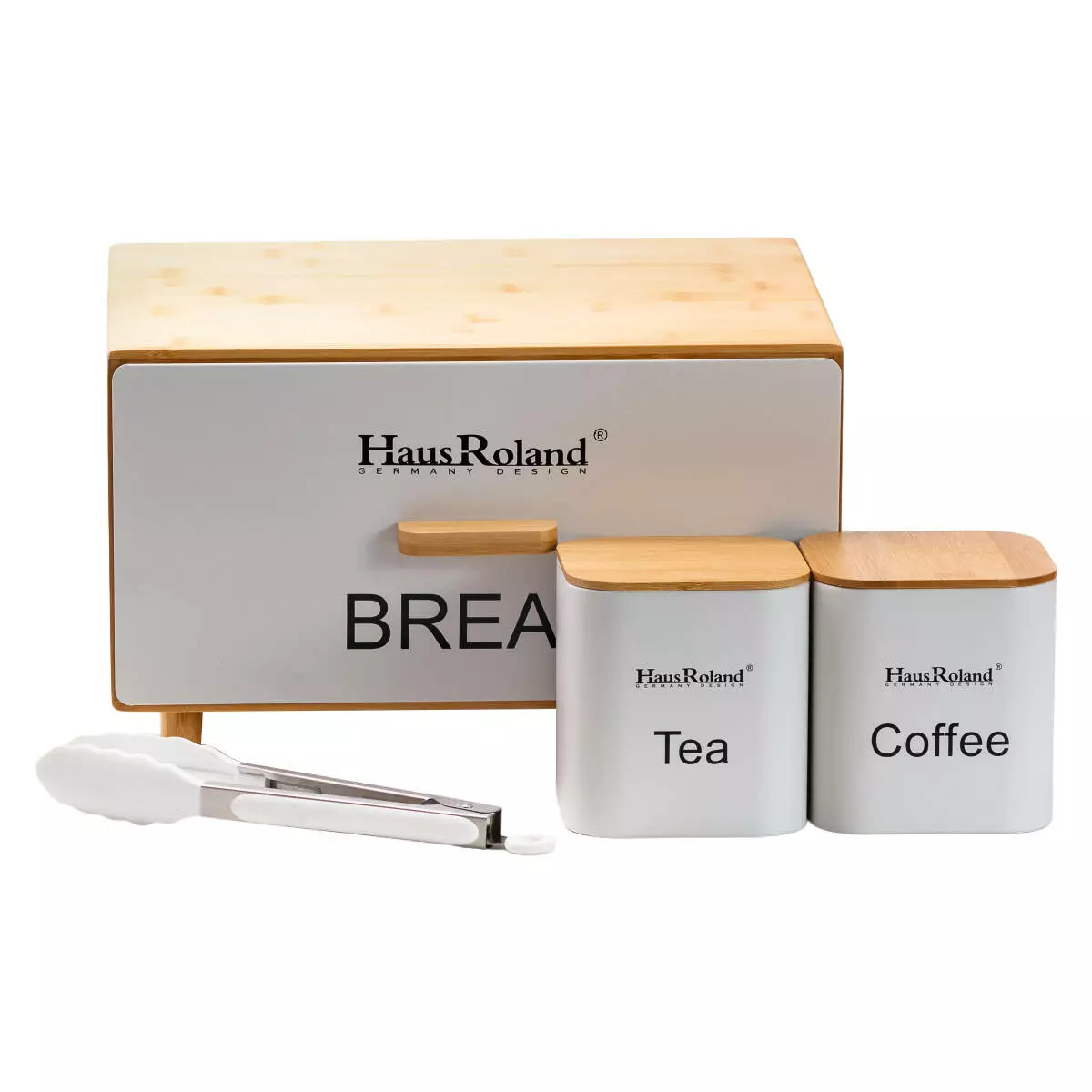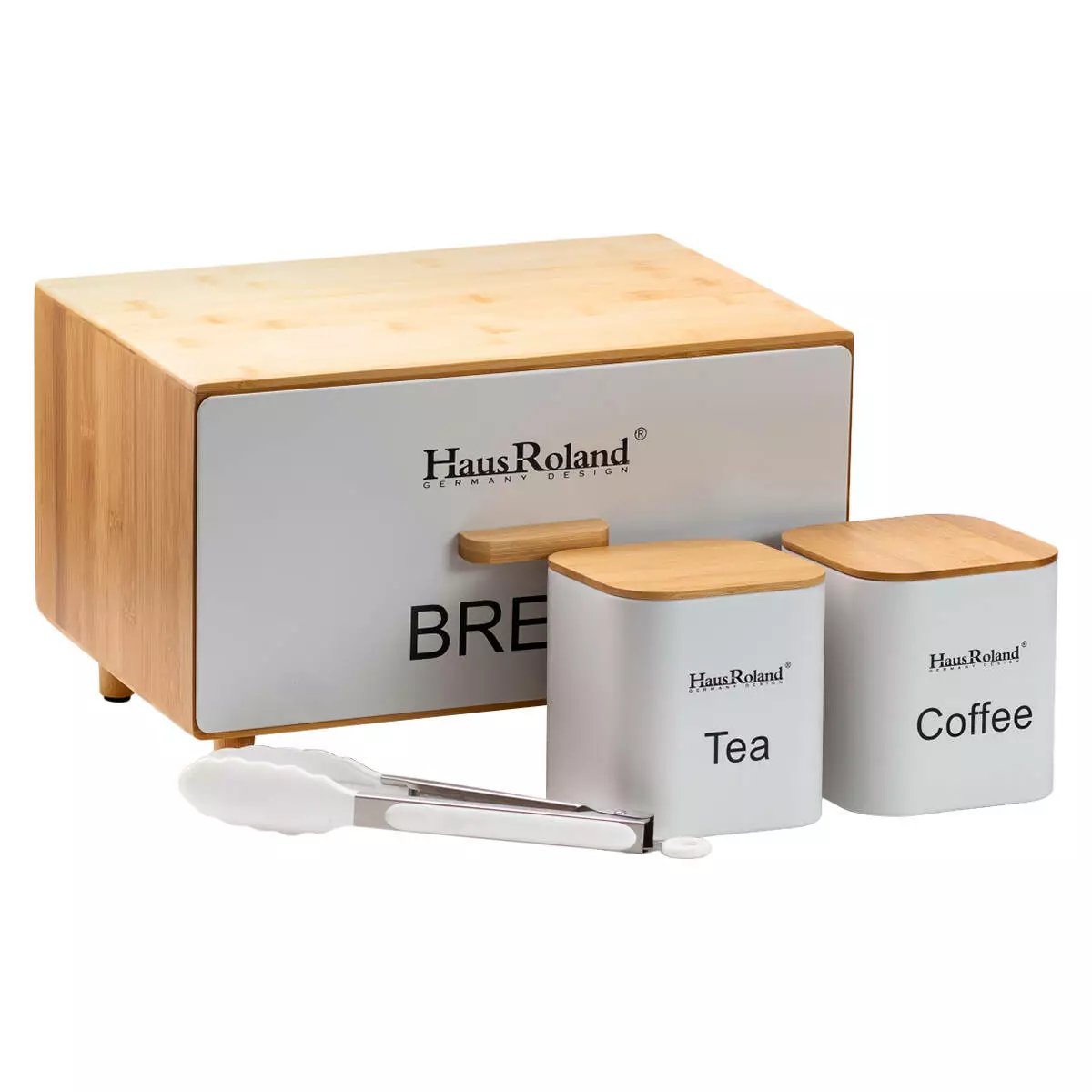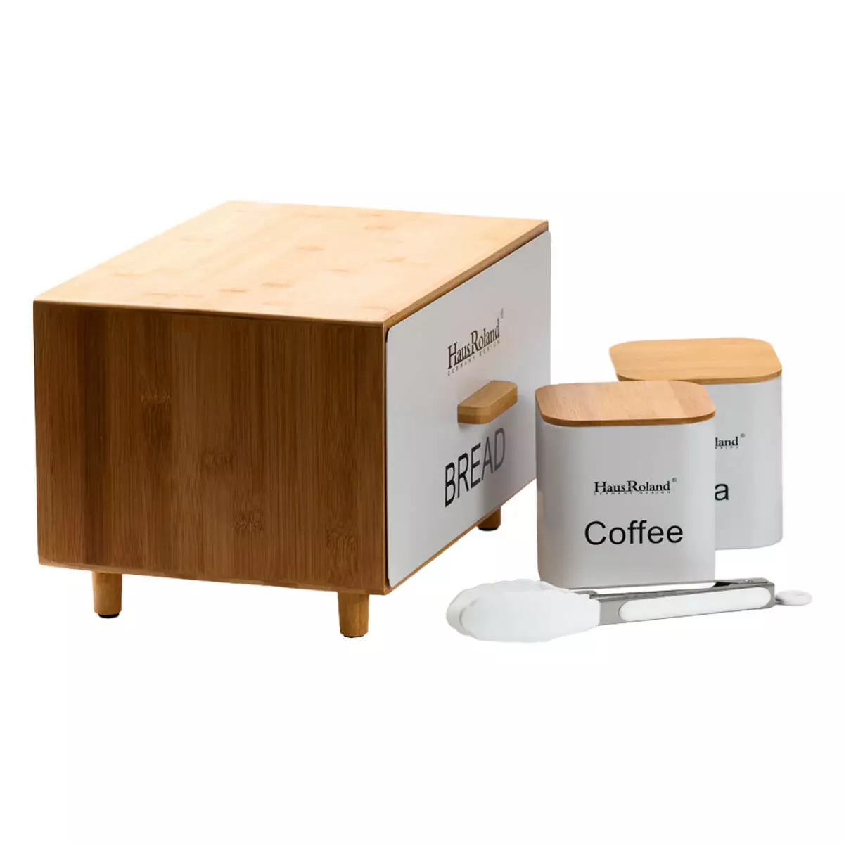 входить містка хлібниця з корпусом з бамбука, 2 баночки та кухонні