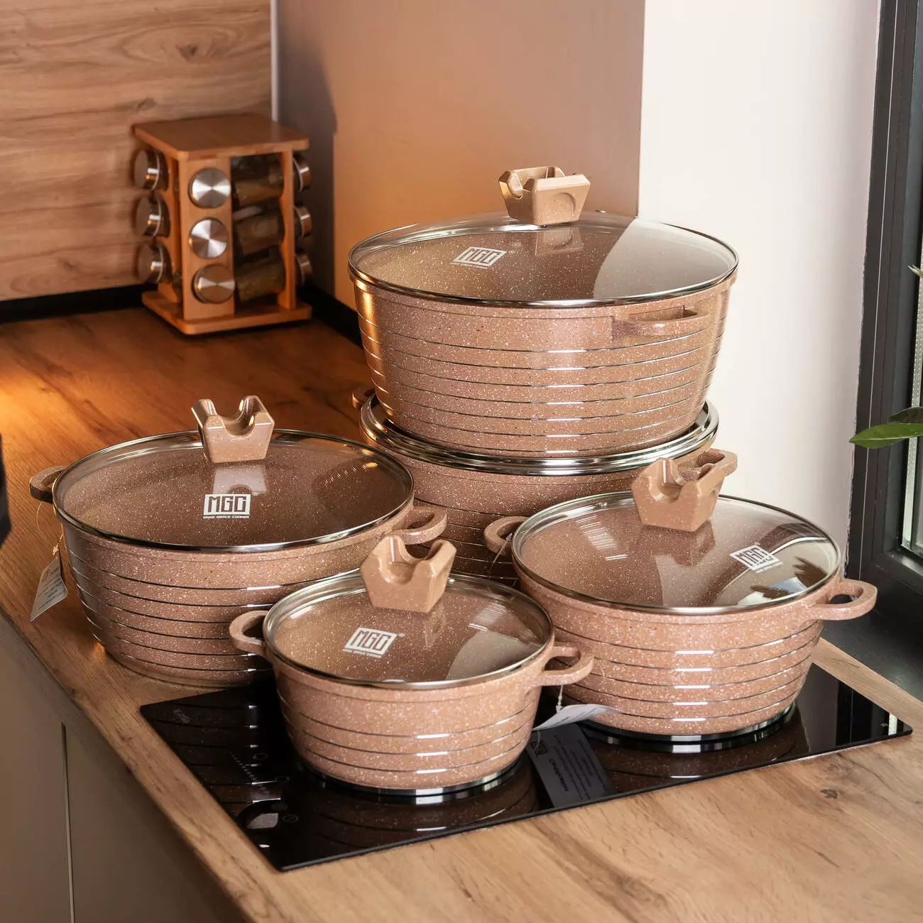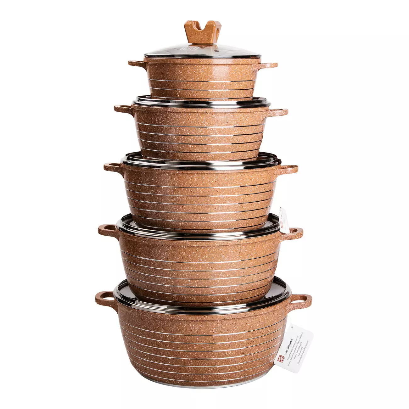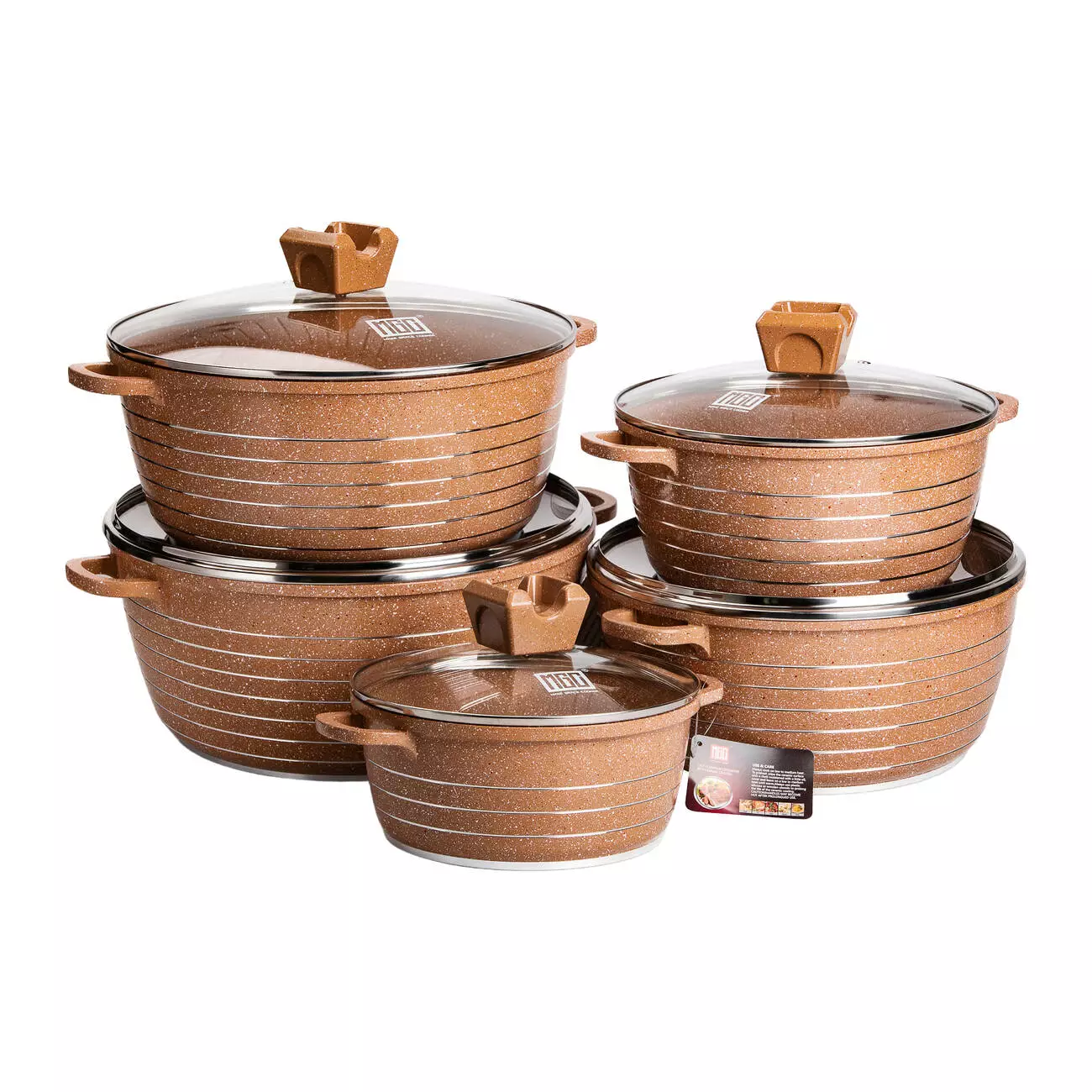 Набір каструль MGC алюмінієвих 2,5/4/5/7/9 л з мармуровим покриттям, коричневий