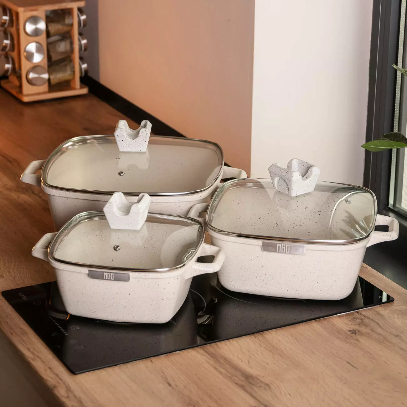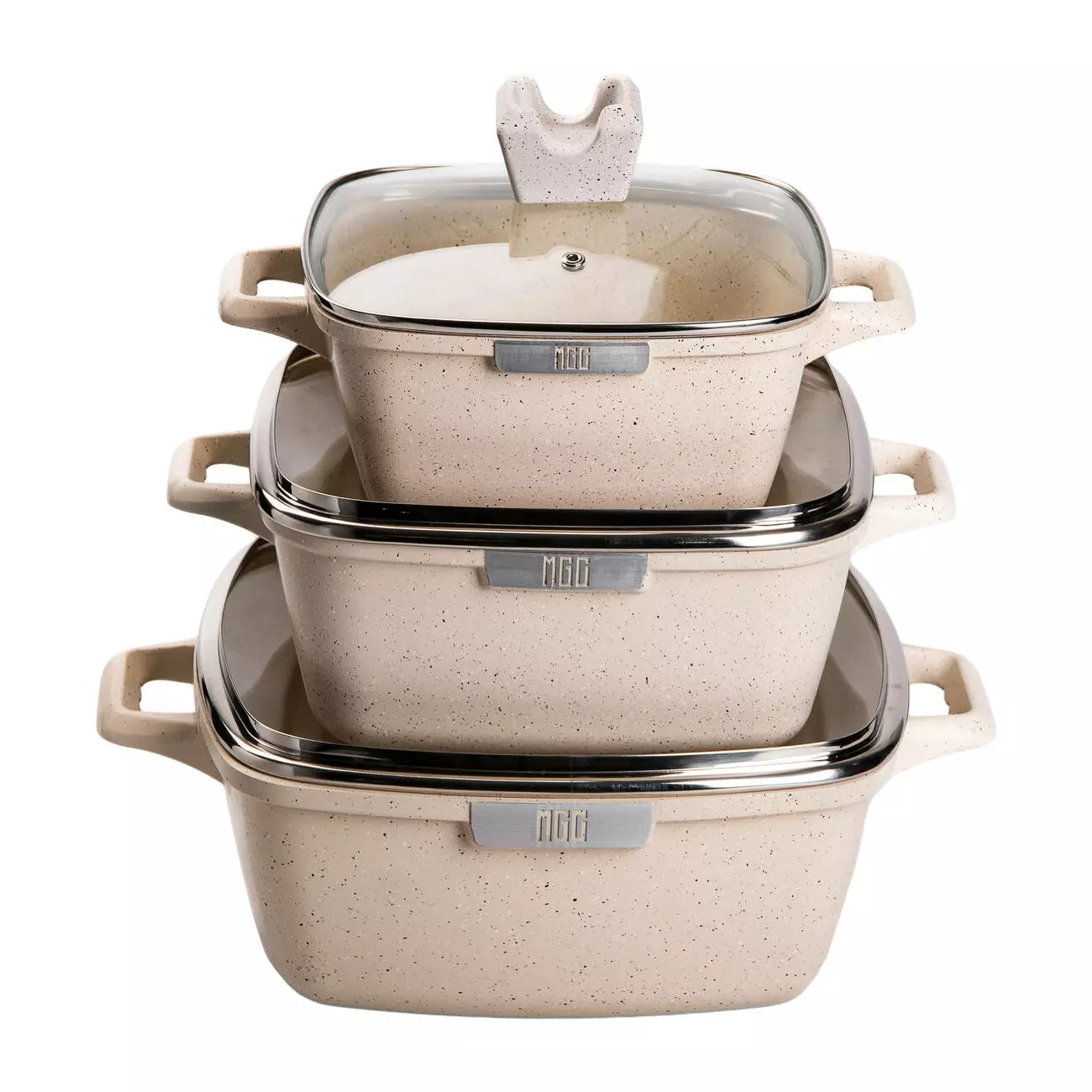 Набір каструль MGC алюмінієвих 3/4,7/7,3 л з керамічне покриттям, бежевий