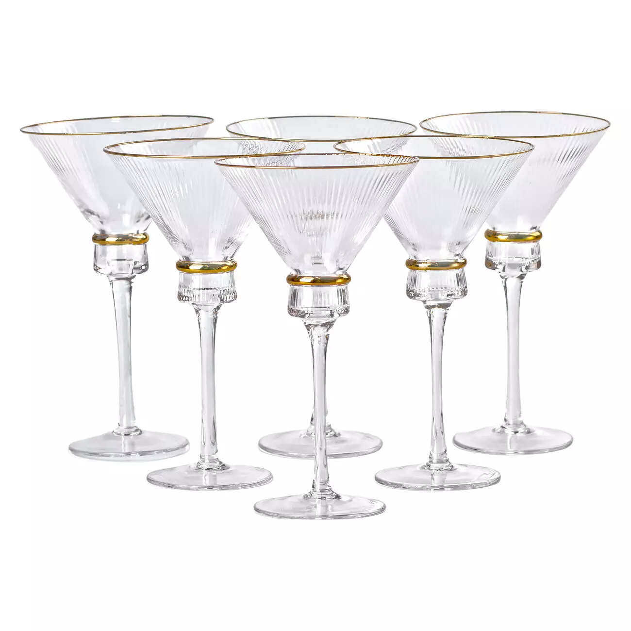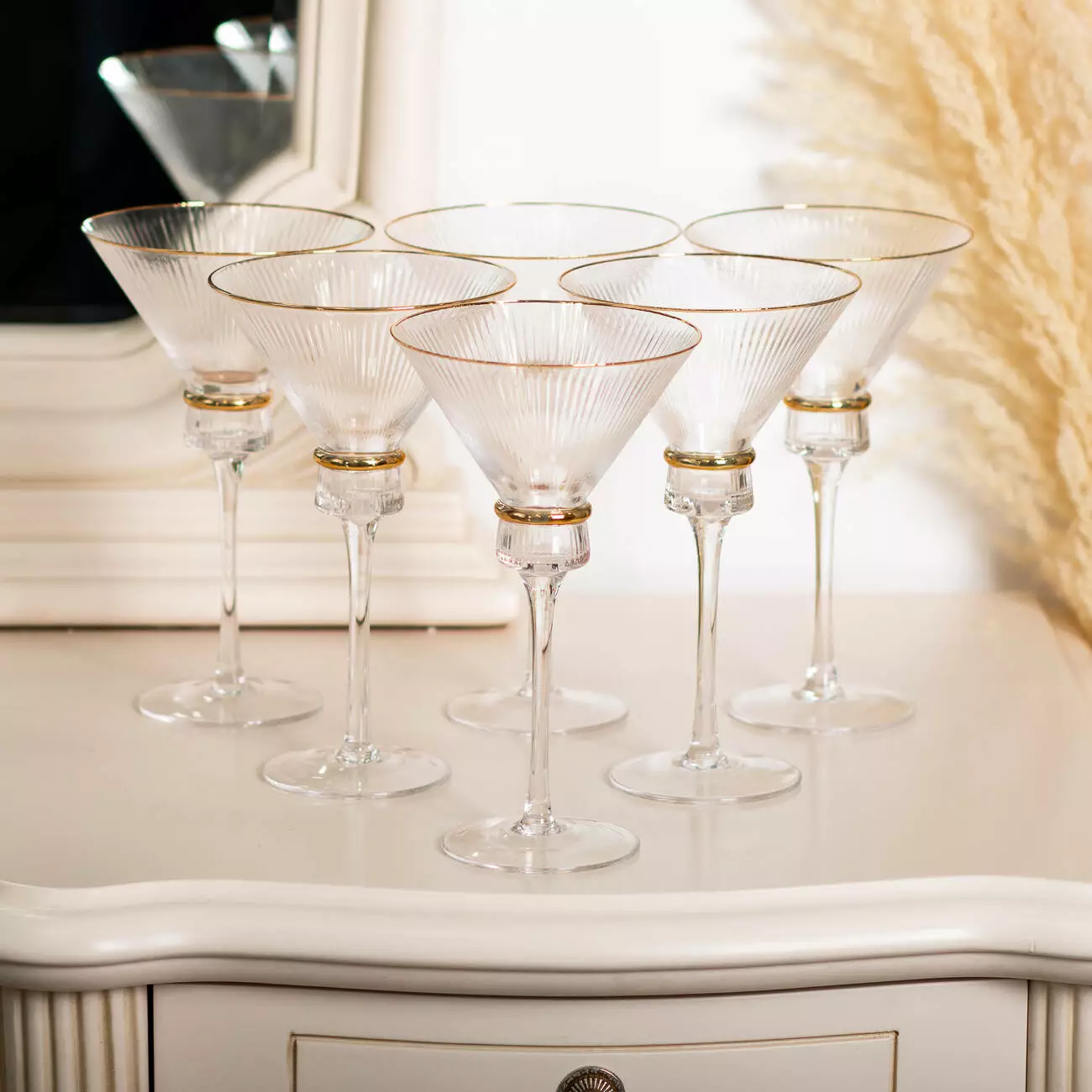 Набір келихів для мартіні Stunning — це елегантний вибір для тих, хто цінує стильні аксесуари для напоїв. Кожен келих має місткість 300 мл, що робить їх ідеальними для подачі класичного мартіні та інших коктейлів. Прозоре скло дозволяє оцінити колір і текстуру напою, а золотий обідок додає розкішного вигляду, підкреслюючи святкову атмосферу.
