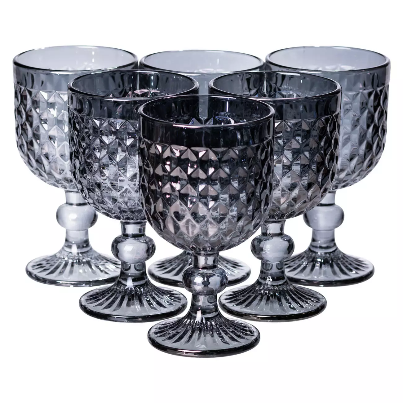 Кожен келих має висоту 14 см, верхній діаметр 7.5 см і нижній — 6 см. Обʼєм — 220 мл, що відповідає середньому розміру для порційного подавання вина. Завдяки рельєфній поверхні келих приємно тримати в руці, а товщина скла дозволяє зберігати стабільність температури напою. Загальна вага набору становить 2 кг.