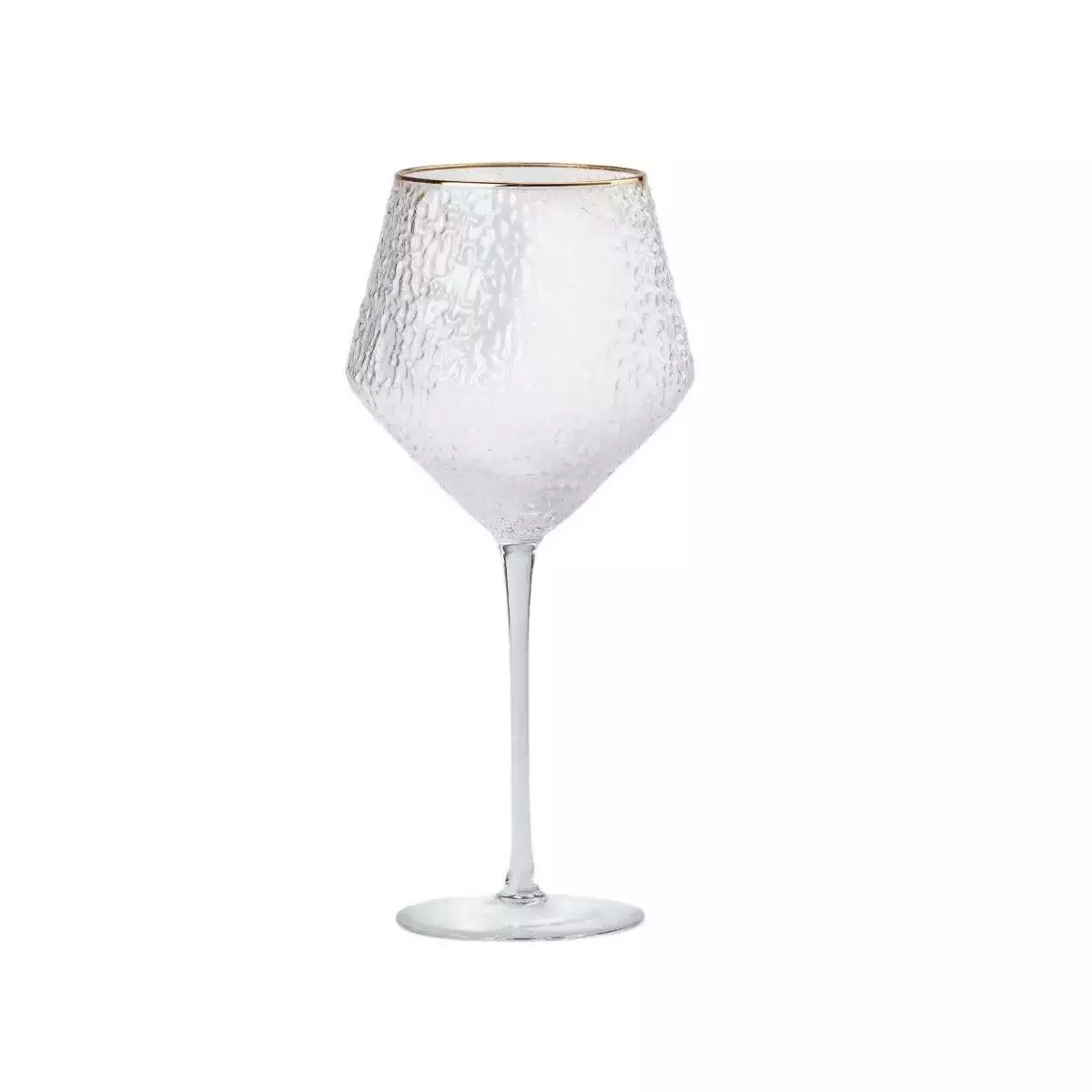 Набір келихів для вина Stunning складається з шести розкішних фактурних келихів, які відрізняються своїм елегантним дизайном і великою місткістю. Виготовлені з прозорого скла, вони дозволяють повністю оцінити колір та текстуру вина. Фактурна поверхня створює вишуканий візуальний ефект, а золотий обідок додає нотку розкоші, роблячи ці келихи чудовим вибором для особливих подій та свят.