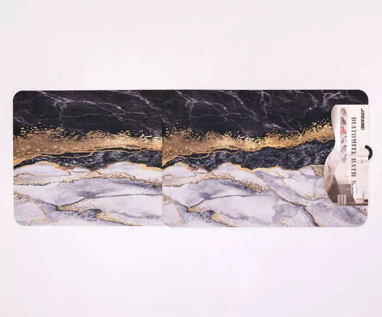 Набір діатомітових килимків складається з двох практичних виробів різних розмірів: 99×38 см та 57×38 см. Це універсальний варіант, який можна використовувати як на кухні, так і у ванній кімнаті. Завдяки сучасному матеріалу килимки добре поглинають вологу, швидко висихають і зберігають чистоту поверхні.
