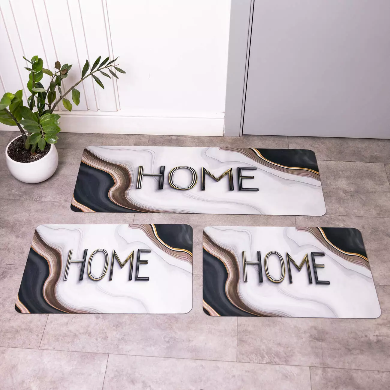 Три діатомітові килимки для підлоги створені для зручного використання у різних зонах дому. Формати 98*38 см і два килимки розміром 58*38 см дозволяють гнучко організувати простір у ванній кімнаті, передпокої або на кухні. Загальна вага 1,5 кг забезпечує стабільність на підлозі та комфорт під час щоденного використання.