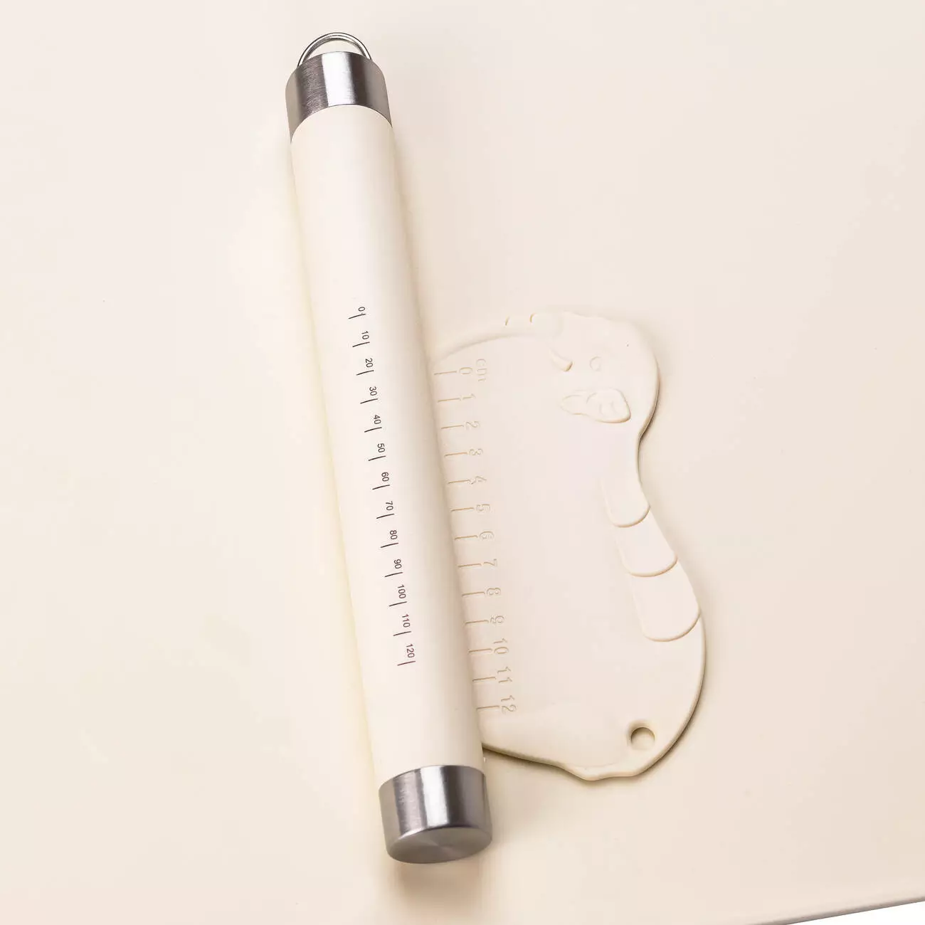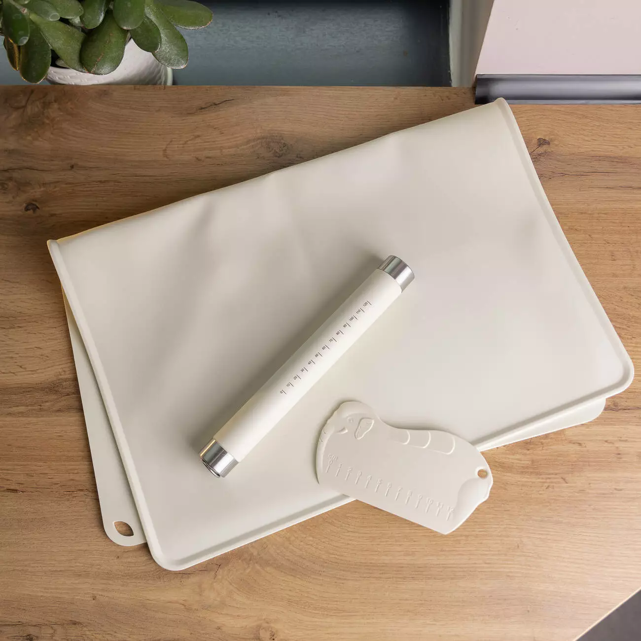 Набір кондитера 3 в 1 килимок силіконовий/шпатель/качалка для тіста, бежевий