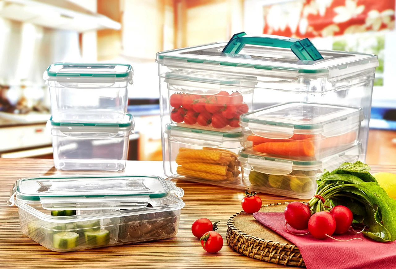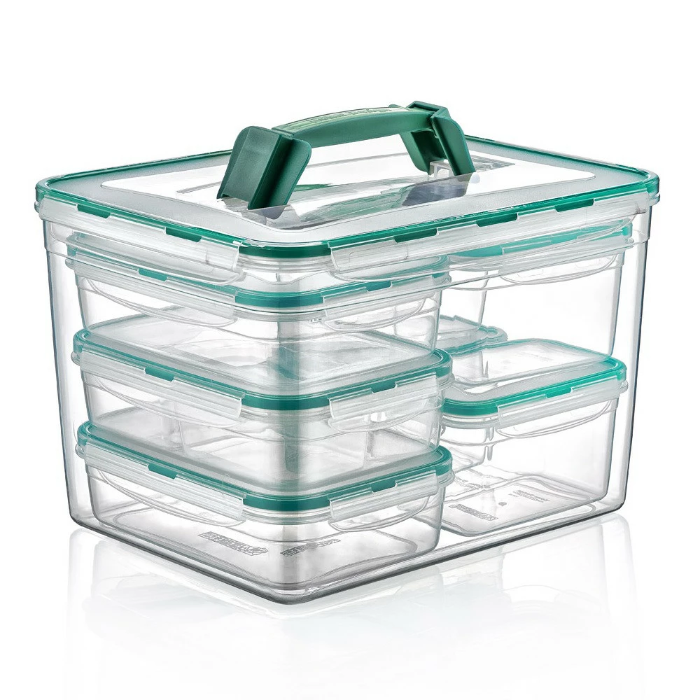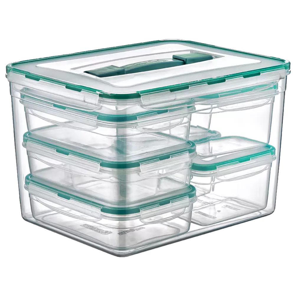 З огляду на що в один 11 л контейнер з ручкою інші контейнери стають один на один, можна використовувати для доставки обідів. Виготовлений з харчового поліпропілену. Пластикові контейнери призначені для зберігання харчових продуктів. Термін придатності не обмежений. Можна мити в посудомийній машині, використовувати в мікрохвильовці з відкритою кришкою, температура використання від -40 до +110°С.