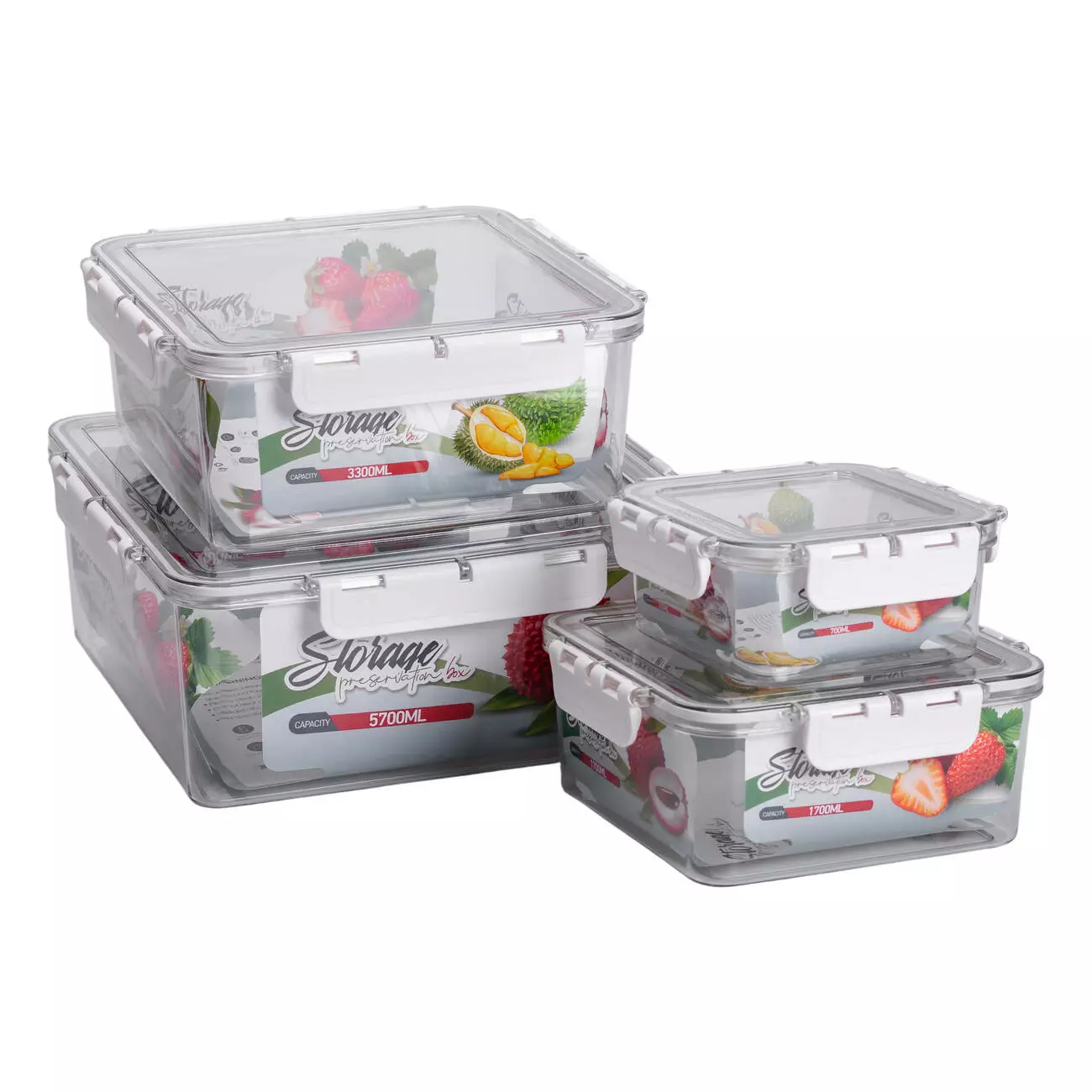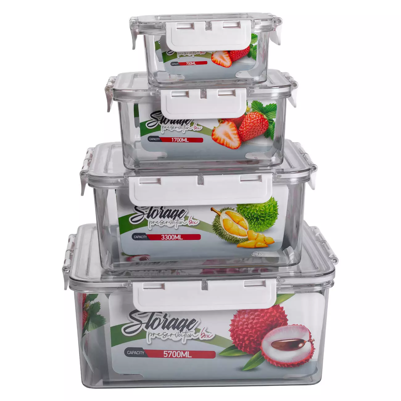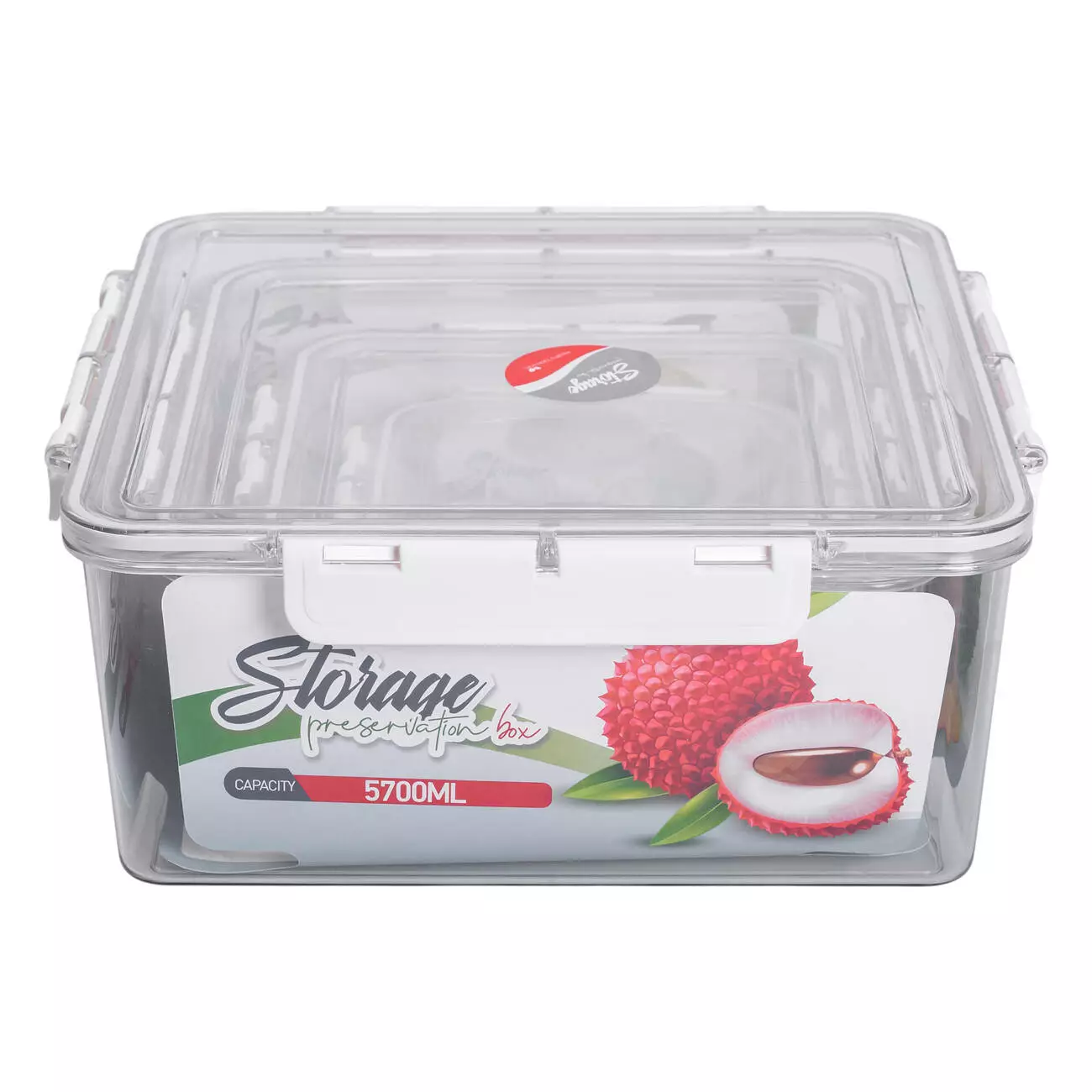 У наборі представлені контейнери об’ємом 5.7 літра, 3.3 літра, 1.7 літра та 0.7 літра. Завдяки різним розмірам їх зручно використовувати як окремо. Прозорі стінки дозволяють швидко оцінити вміст, а зручні фіксатори на кришках забезпечують безпечне перенесення.