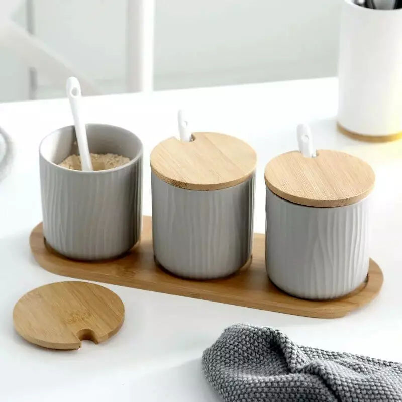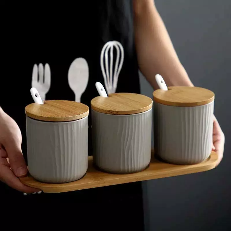 Набір із трьох контейнерів із дерев'яними кришками прикрасить Вашу