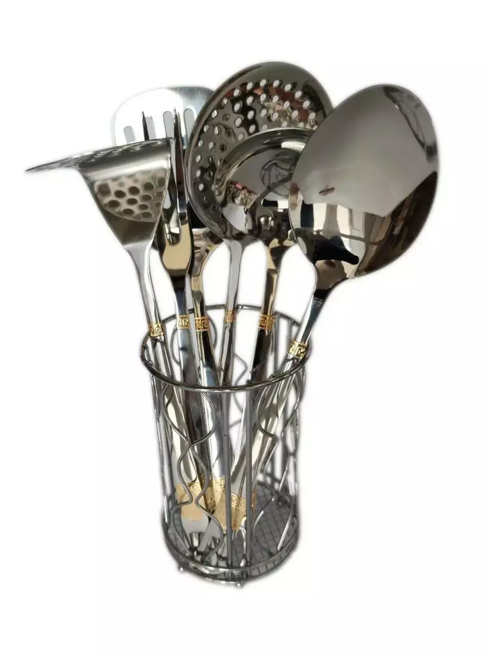- половник; - лопатка; - поварская ложка; - поварская вилка; - картофелемялка; - шумовка; - подставка металическая.
