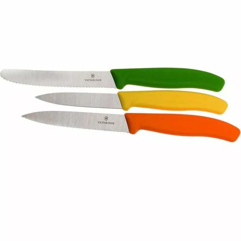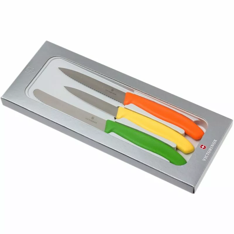 Набір кухонних швейцарських ножів Victorinox SwissClassic Paring Set 6.7116.31 G в подарунковій упаковці. Swiss Classic (Свісс Класік) – це серія ножів для успішного виконання побутових завдань. Набір з трьох ножів з різнокольоровими рукоятями дозволить виконувати різні роботи з овочами та фруктами. А барвистий дизайн стане приємним бонусом і прикрасить Вашу кухню.
