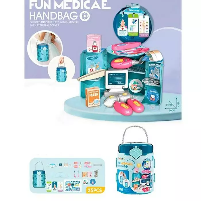 Набiр лiкаря 9123 3в1, стіл, мед. інструменти, сумка-колба, 25 предм., карт.обгортка, 11,5-16-11,5см