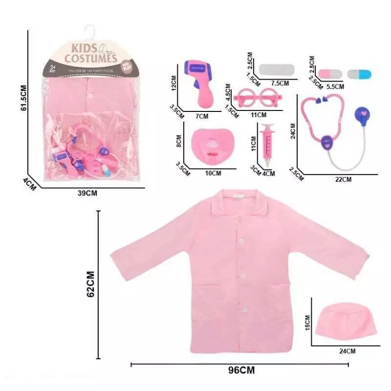 Набір лікаря MJS 006-1 (96/2) халат лікаря, шапочка, стетоскоп, шприц, термометр, 2 пігулки, в пакеті