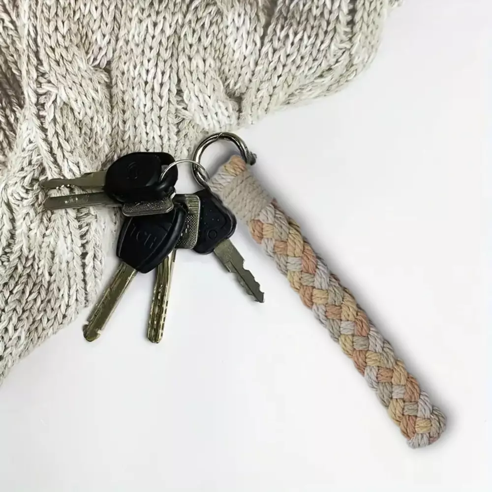 палітрі: світло-сірий, сірий, бежевий, коричневий. Плетений брелок