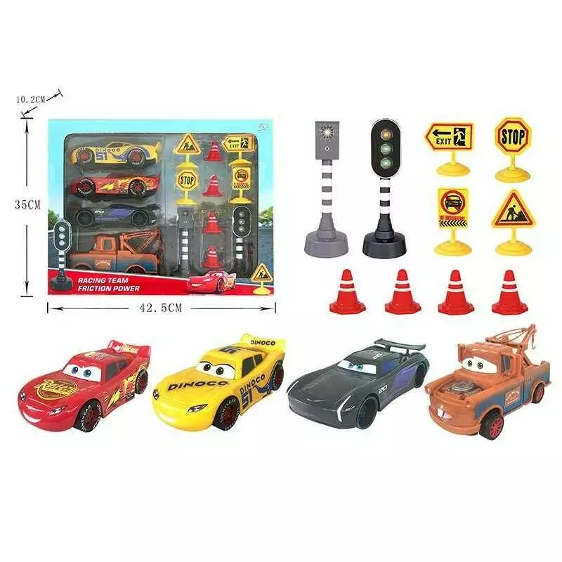 Главная > Каталог > Игрушки > Игрушечные машинки > Набір машин 086 (16) 4 штуки, герої, інерція, світлофор та пристрій для фіксування швидкості на батарейках, дорожні знаки, в коробці оптом