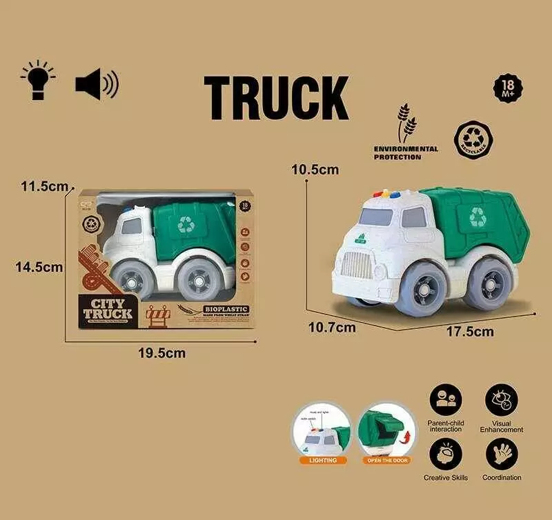 Машинка 903-17 (96/2) “Сміттєвоз”, довжина 17.5 см, підсвічування, кумедні звуки, мелодії, звуки транспорту, рухомі елементи, біопластик, в коробці