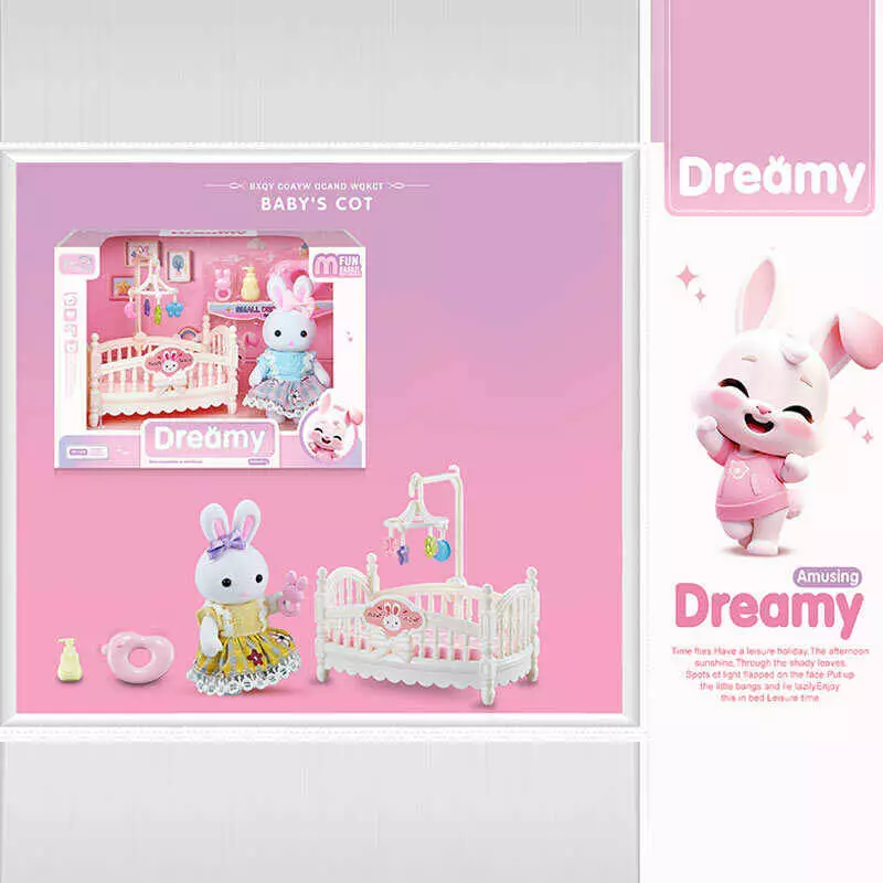 Набір меблів 6621 A-7 (96/2) флоксова фігурка, висота: 9 см, ліжечко, аксесуари, в коробці