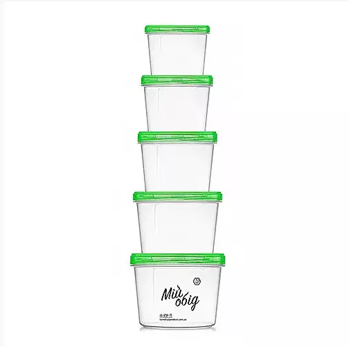 НАБІР ЄМНОСТЕЙ КРУГЛИХ 0,2+0,3+0,5+0,7+1,0 л.1.0 Л (ЗЕЛЕНА КРИШКА) 82з