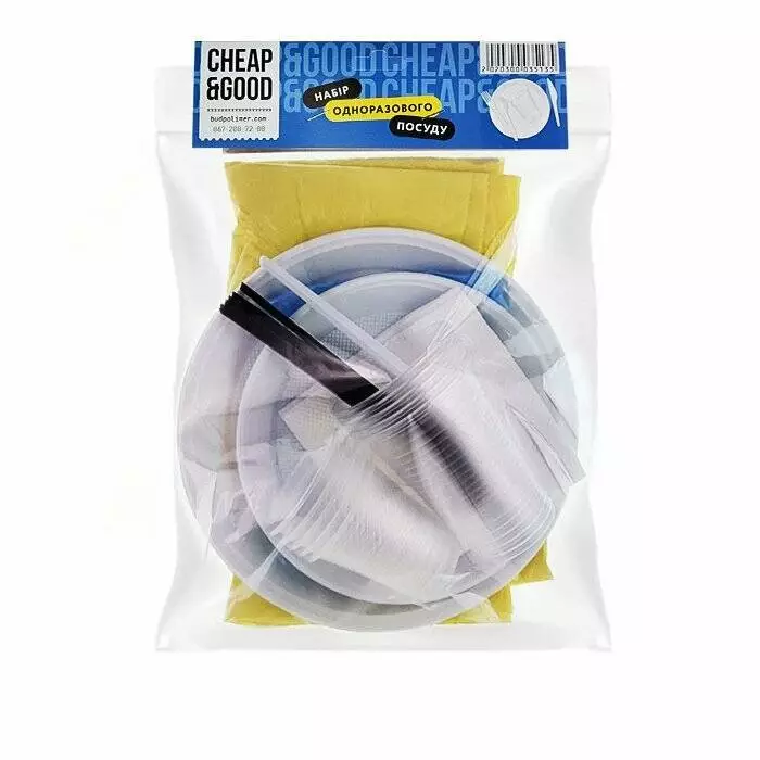 Повний набір одноразового посуду, упаковка на 5 осіб.