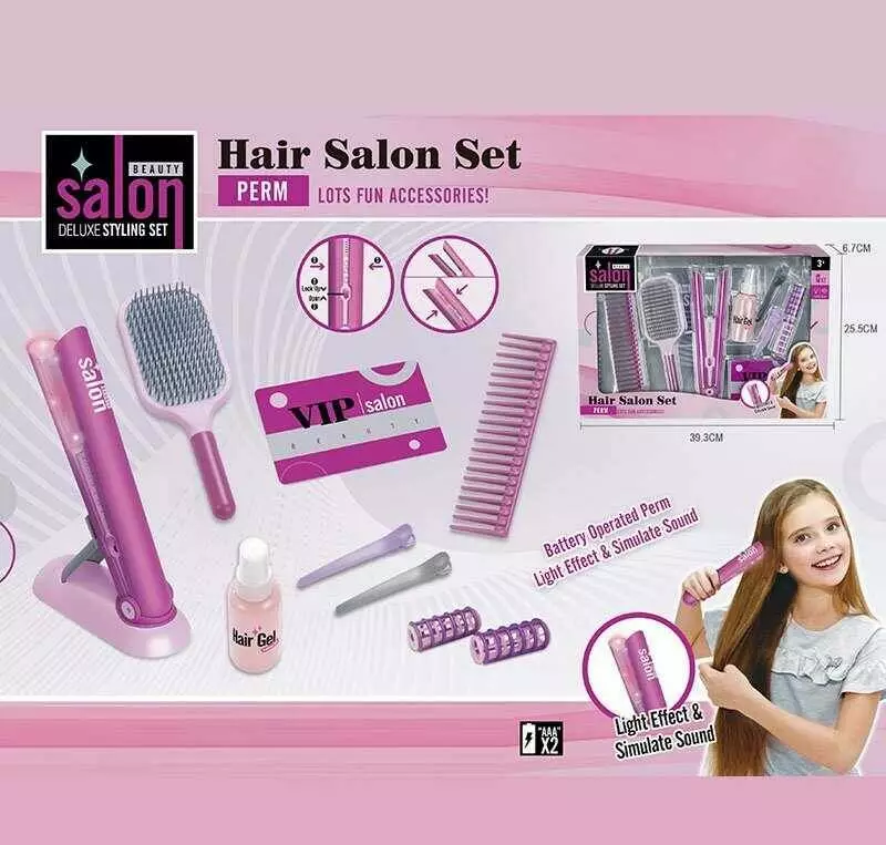Набір перукаря YLQ 087 (42/2) стайлер, звук, підсвітка, 2 заколки, 2 щітки для волосся, бігуді, баночка для спрею, в коробці