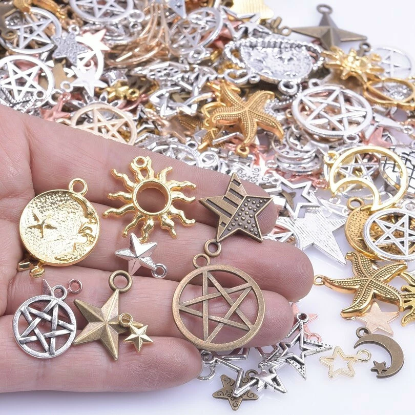 Набір підвісок місяць, сонце, зірки RESTEQ 50 шт. Металеві підвіски для рукоділля. Набір талісманів