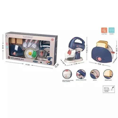 Фотография 1 товарной позиции интернет-магазина детских игрушек www.smarttoys.com.ua Набір побутової техніки YH189-4C міксер, тостер, бат., кор., 41-22-9,5см.