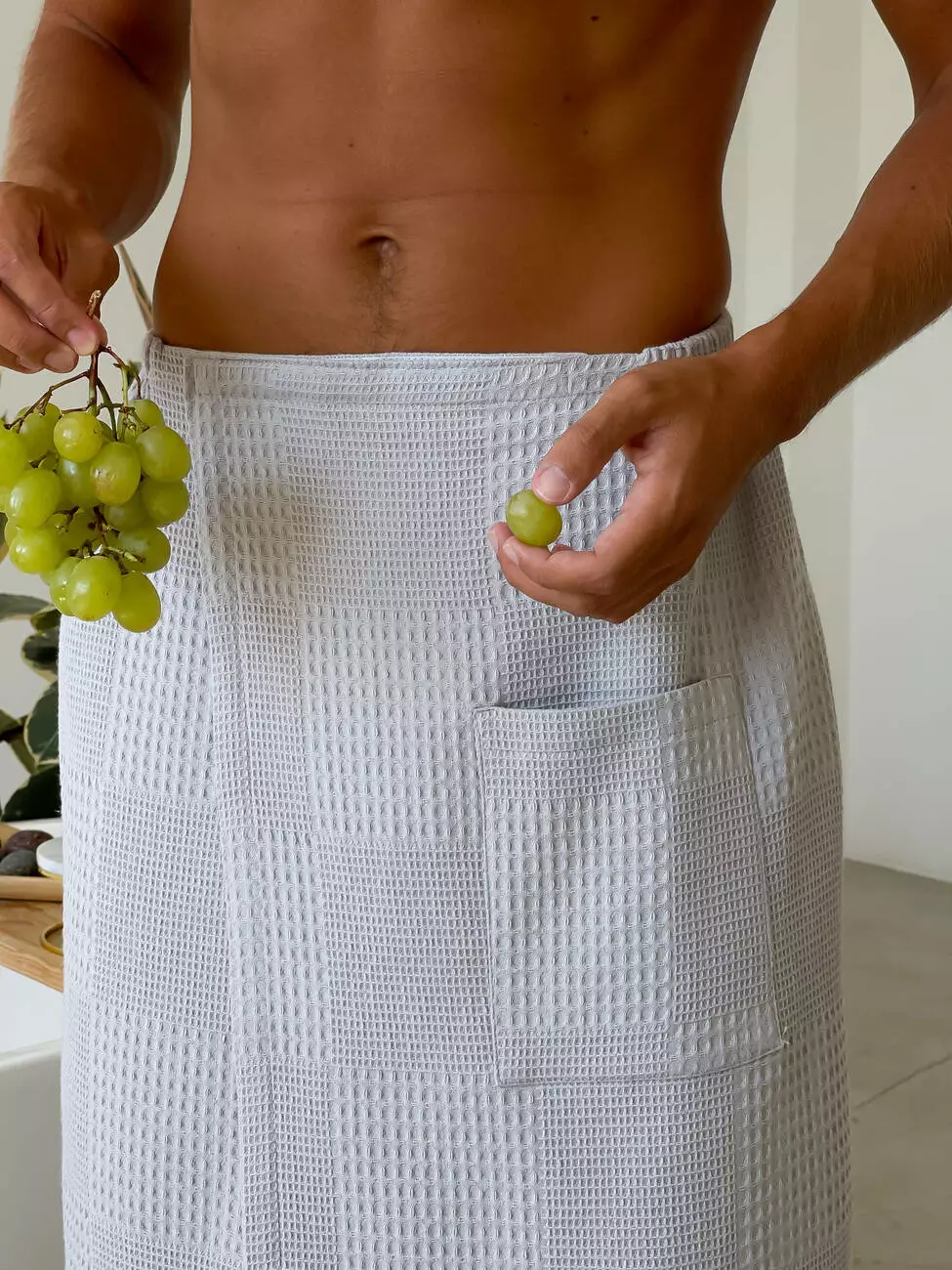 Кілт (парео) чоловічий для лазні/сауни, вафельний на липучці.