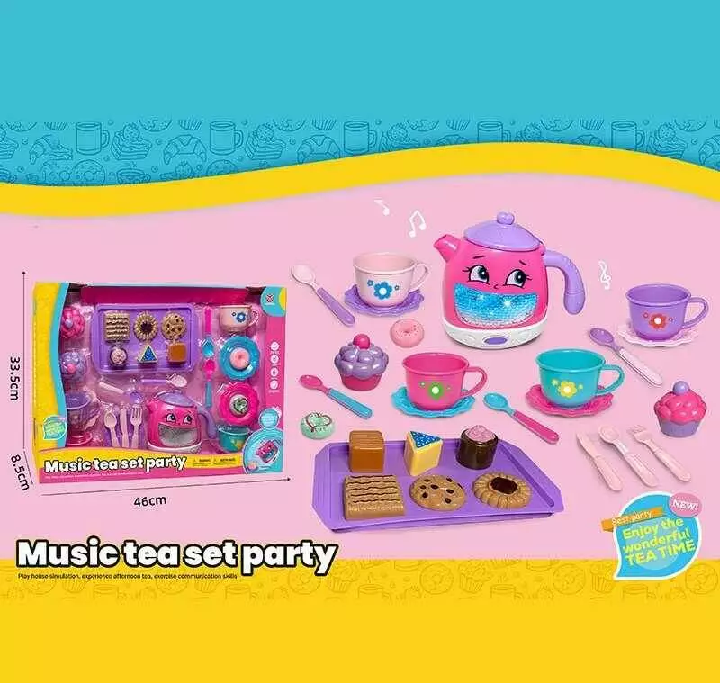 Набір посуду 3221 C (30) чайник, підсвічування, звуки, мелодії, датчики руху, на батарейках, посуд, солодощі, в коробці