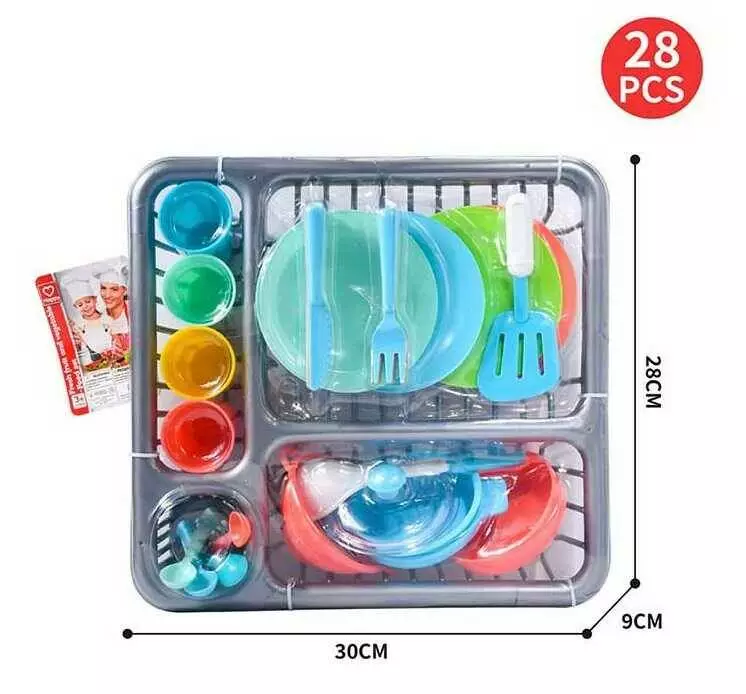 Набір посуду BJ 008 (36) 28 елементів, тарілки, ложки, виделки, сковорідка, склянки, лопатка, в слюді